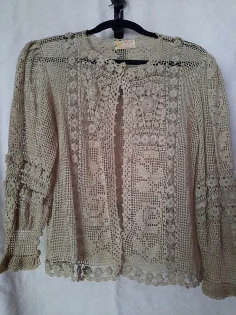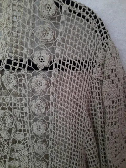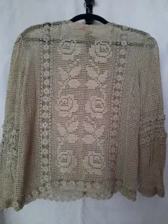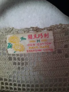 Hermosa blusa China tejida a mano. Blusa caqui tejida a mano por manos chinas, manga larga y botones al frente talla M.