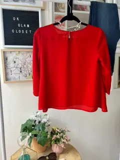 Hermosa blusa marca P&B, de tela cóleo roja, manga 3/4, el corte es holgada en la cintura, queda excelente con jeans o pantalón de vestir. La tela no es strech, talla Ch