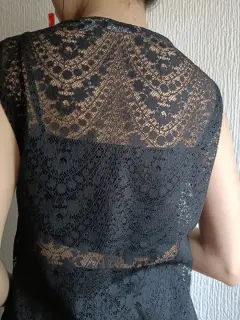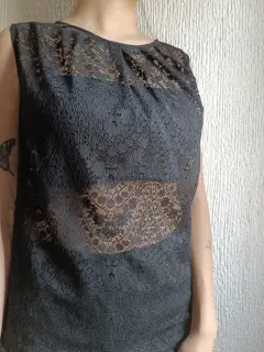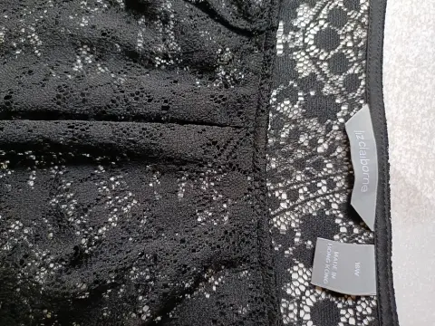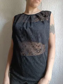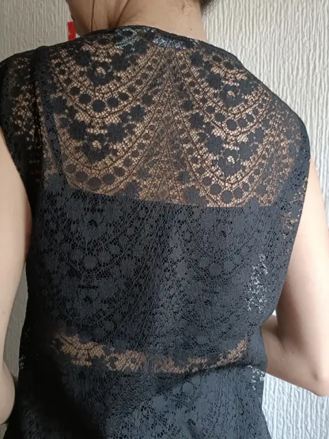 Blusa de encaje negro, sin mangas, talla L , viene sin ningún detalle, es marca Liz Claiborne.