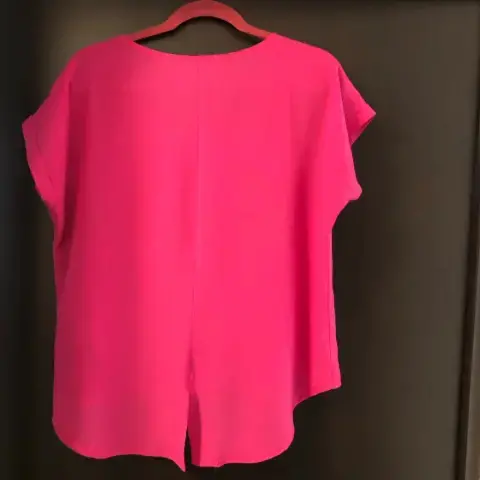 Hermosa blusa en gasa. Rosa mexicana , fresca con abertura trasera coqueta . Cuello redondo Súper suave al tacto y cómoda .