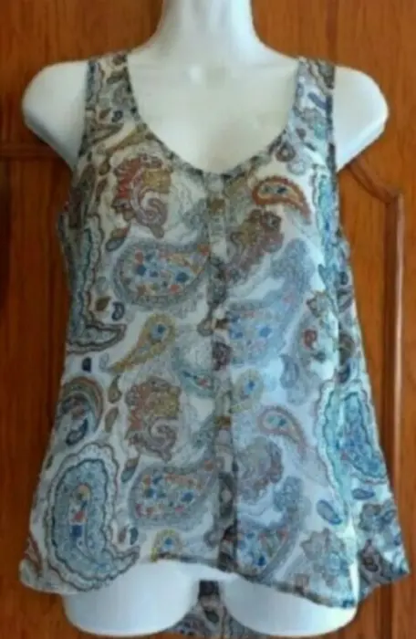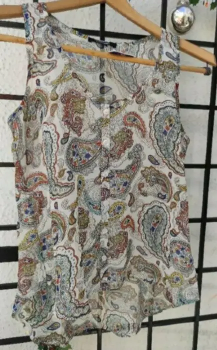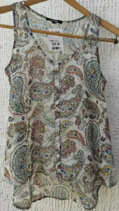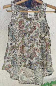 Hermosa blusa nueva.Tela delgada, suave, fresca. Transparente.Más larga de atrás, con tirantes anchos.Juvenil, alegre, linda!Hace súper padre figura!