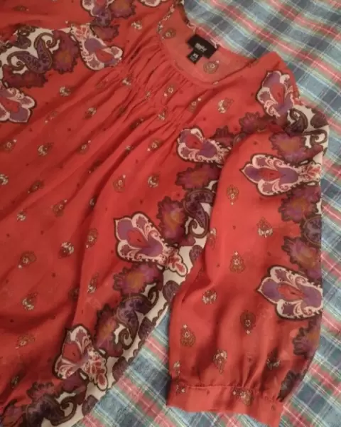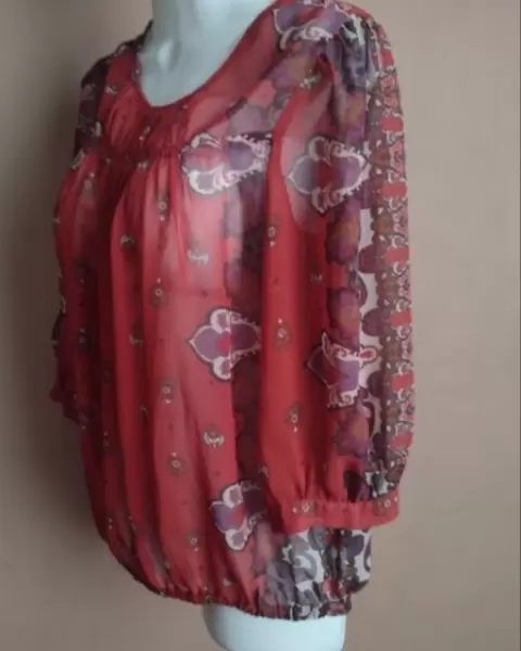 Hermosa blusa semi transparente 🤩. Hermosa y fresca blusa en color rojo chedron con estampado , tela semi transparente 🤩 y manga 3/4 bombacha , elástico en cintura 👌
