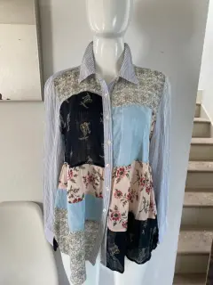 HERMOSA CAMISA MEZCLA DE COLORES Y TEXTURAS