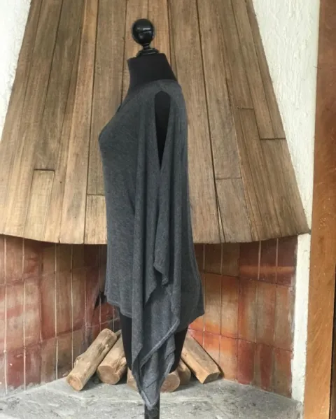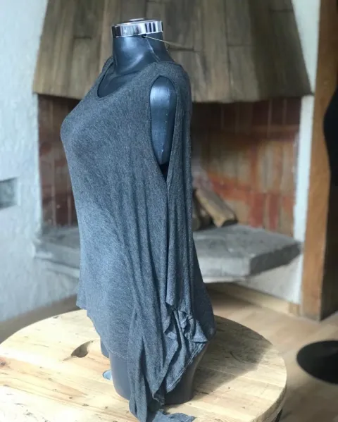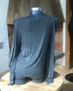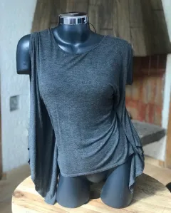 Hermoso blusón gris Oxford asimétrico