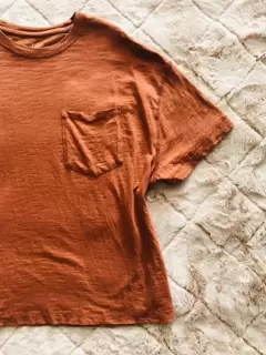 Hermosa blusa con bolsita enfrente, tipo crop, color tabique, queda a talla 11/13 tela con estretch