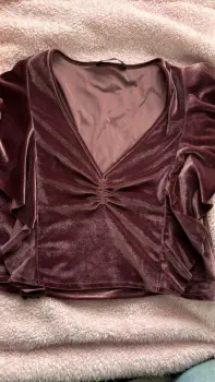 Un hermoso Crop top morado con mangas olgadas talla L, color morado, no tiene ningún detalle solo se usó una vez