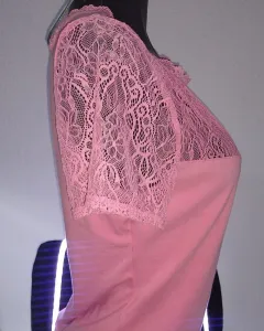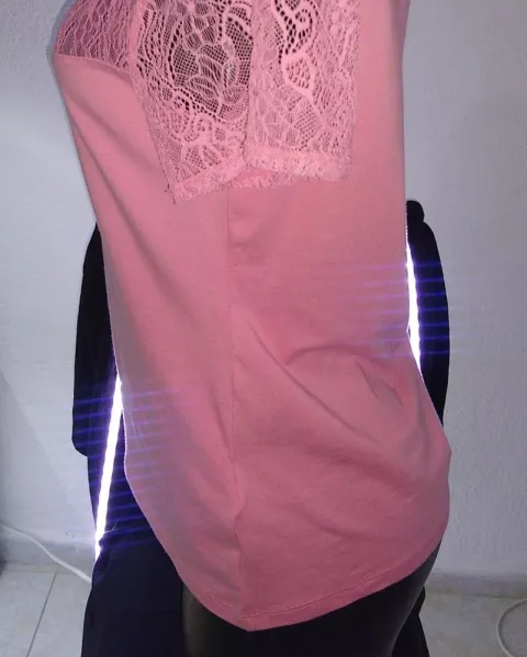 H&M blusa con encaje. H&M blusa manga corta cuello redondo talla grande, sin detalles, es nueva.