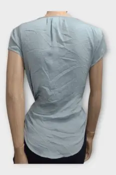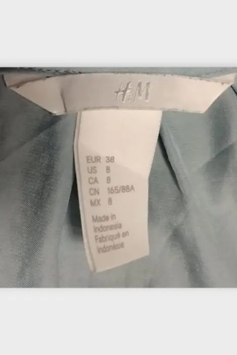 H&M Blusa Dama Polyester Verde M. H&M Blusa Dama Polyester Verde MMarca: H&MOrigen: IndonesiaMaterial: 100% PolyesterTalla: MEstilo: CasualPatrón: BlousonColor: Verde Cierre: AbiertoPecho: 53 cmLargo: 70 cmHombro: 45 cmManga: 11 cmRopa de USO en muy buen estado
