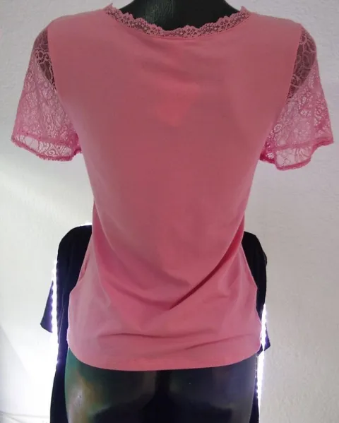 H&M blusa manga corta, cuello redondo, parte superior de encaje, talla mediana, sin detalles es nueva.