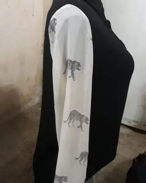 Libre jaguar. Blusa elegante manga larga con jaguar estampado en mangas