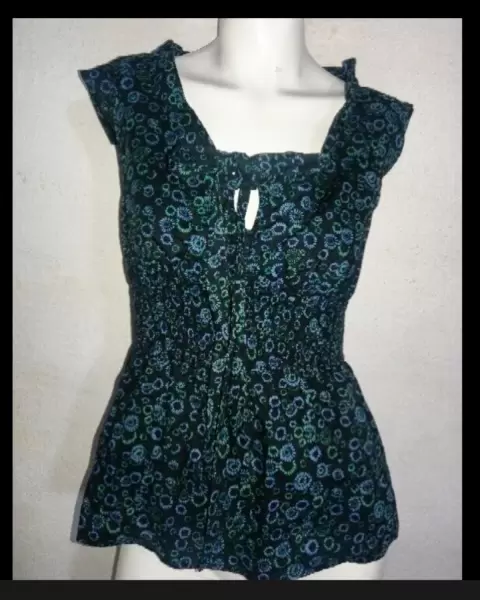 -Hermosa blusa de Loft estilo bohemio en perfecto estado-Sin mangas-Color negro con estampados en color verde y azul oscuro-100% algodón-Cuenta con dos tirantes al frente para ajustar el escote-Cintura con corte fruncido-Si requieres mayor información o fotos no dudes en contactarme 😊😉