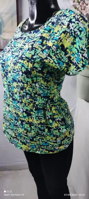Es tela delgada, súper fresca, con ligeros resortes en los costados, súper convinable en talla M