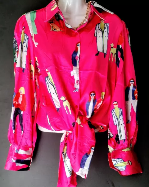 Blusa estampada estilo retro, con tela muy cómoda. Alta gama! Incluye un collar de accesorio. Es excelente para combinar con cualquier prenda!No te arrepentiras de comprarla!