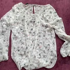 Linda brula de transparencia. Blusa de transparencia.Con lindísimo estampado de mariposas en colores pasteles.Luce increíble con un bralette blanco o rosa.Manga larga con resorte. Pinzas en el busto.La parte de atrás queda suelta y descubre la espalda.La tela es súper cómoda y fresca.Talla 7, o chica.Marca Metrópolis Company.Detalle imperceptible por hilo (ver última foto).