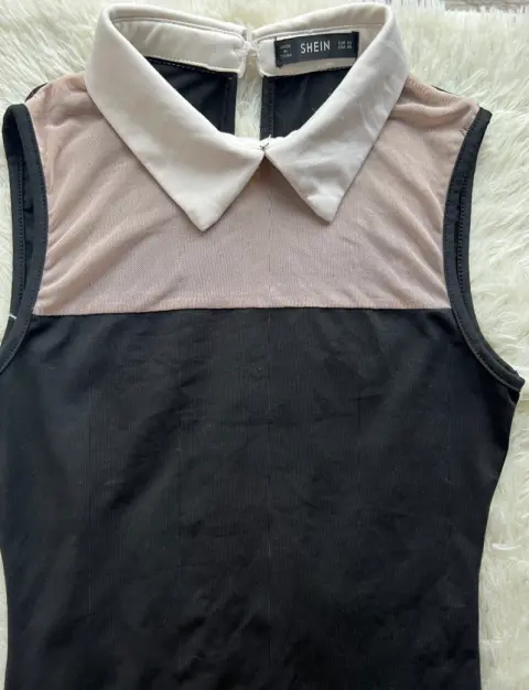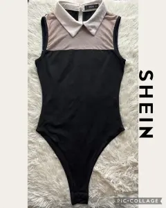 Lindo body SHEIN. Súper lindo con cuello y con tela transparente en el pecho , de abajo tela de buena calidad súper bonito , nuevo sin detalles talla xs , queda a ch también estira un poco.