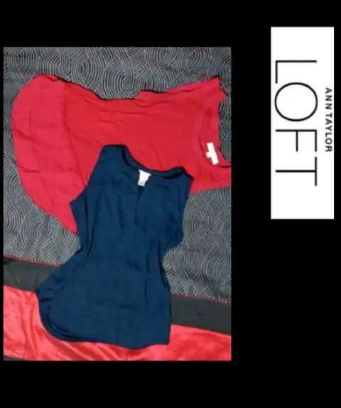 Combo 2 blusas LOFT , una color vino con una aplicacion muy linda de gasa en la parte de abajo y otra azul obscuro, se usaron muy poco