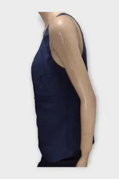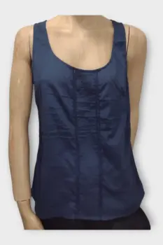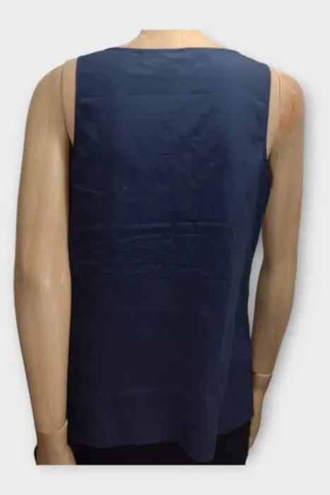 LUCKY BRAND Blusa Dama Rayón Azul MMarca: LUCKY BRAND Origen: IndiaMaterial: 100% RayónTalla: MEstilo: CasualPatrón: BlusaColor: Azul MarinoCierre: AbiertoPecho: 50 cmLargo: 59 cmHombro: 31 cmManga: Sin MangasRopa de USO en muy buen estado