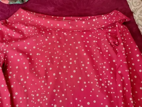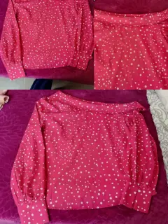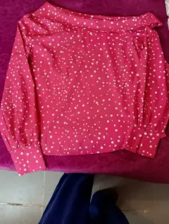 Lunares blanco. Linda blusa de hombro descubierto en lunares blancos