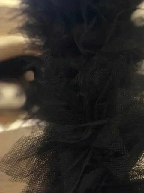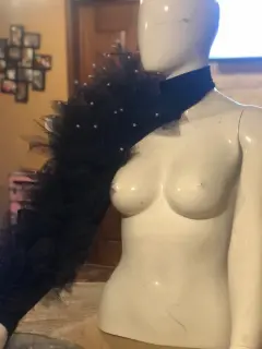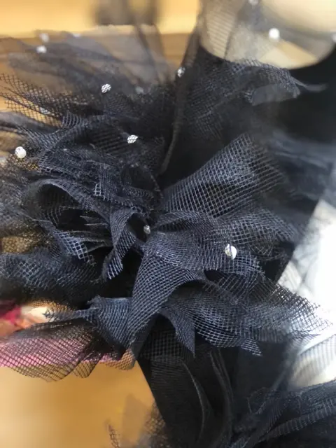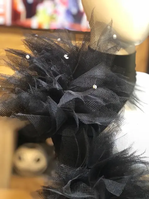 Manga de tull. Manga de Licra con tull y perlas de fantasía, color negro, solo es la manga izquierda, el Tull es cocido a mano