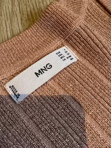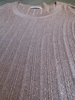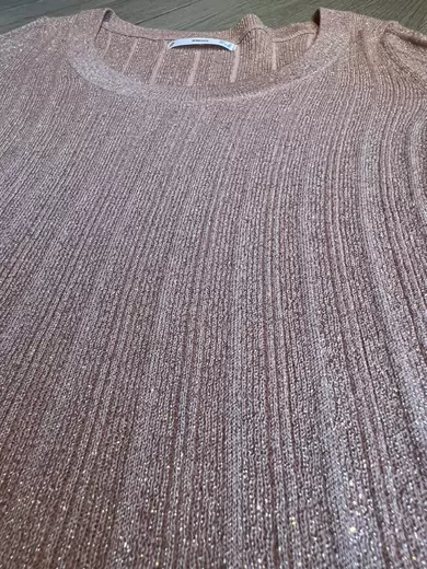 Blusa Mango, hilo metalizado, color rosa palo.Talla S, ajusta al cuerpo.