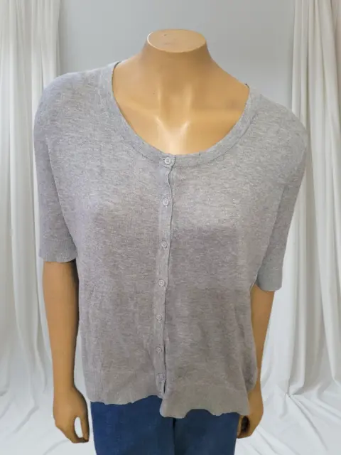 Merona Blusa Casual.. Merona Blusa Casual, talla XL, color gris, cuello redondo con botones al frente, manga 3/4, semielastico en cintura y mangas, corte recto, hecho de algodón y modal, mide 42cm de hombro a hombro 46cm de axila a axila, 44cm de cintura con 58cm de largo del hombro hacia abajo en buen estado cosmetico.