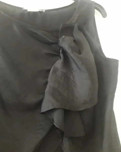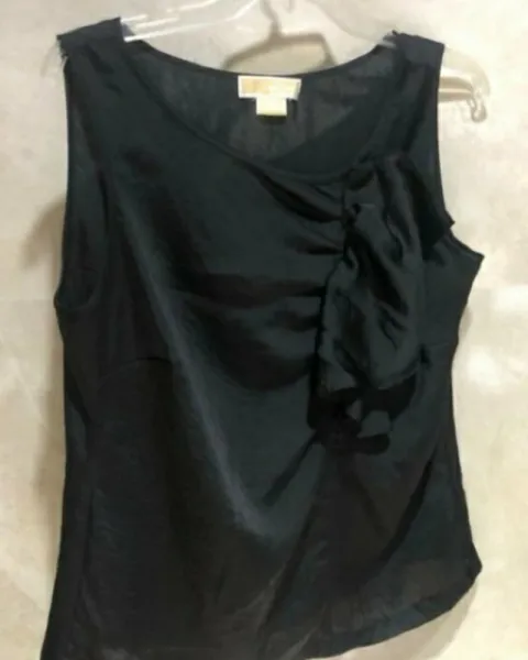 Michael Kors Blusa Satín Apliqué Escarola. Medidas: 50cm de Busto y 60cm de Largo.Color: Negro Material: Poliéster ideal para usar con Pantalón de Vestir, tiene una escarola al frente en el bustoSi es tú primera compra en la App puedes utilizar mi codigo de descuento de $100 MXN que tengo especial para ti. • Código: MontrealXrdjO •