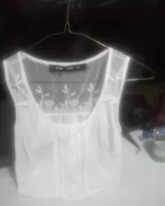 Micro top color blanco con tras parecía en el busto y encaje en frente exlente edtado