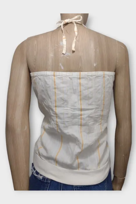 Nike Blusa Tirantes Dama Beige Algodón MBlusa marca NIKE para dama 100% AlgodónMarca: NIKEOrigen: ChinaMaterial: 100% AlgodónTalla: MEstilo: CasualPatrón: Blusa de TirantesColor: Beige con rayasCierre: AbiertoPecho: 42 cmLargo: 47 cmHombro: No AplicaManga: No AplicaRopa de USO en muy buen estado