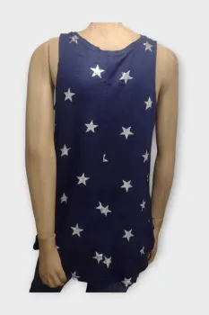 Old Navy Blusa Tirantes Dama Rayón Azul Marino MBlusa marca Old Navy Azul Marino y estrellas 95% Rayón 5% SpandexMarca: Old NavyOrigen: HaitiMaterial: 95% Rayón 5% SpandexTalla: MEstilo: CasualPatrón: CasualColor: Azul MarinoCierre: AbiertoPecho: 47 cmLargo: 64 cmHombro: 30 cmManga: Sin MangasRopa de USO en muy buen estado