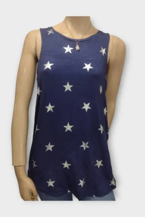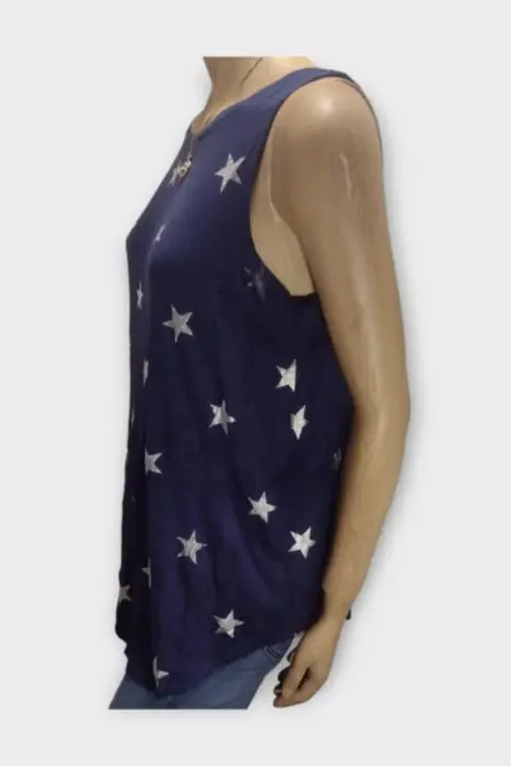 Old Navy Blusa Tirantes Dama Rayón Azul Marino MBlusa marca Old Navy Azul Marino y estrellas 95% Rayón 5% SpandexMarca: Old NavyOrigen: HaitiMaterial: 95% Rayón 5% SpandexTalla: MEstilo: CasualPatrón: CasualColor: Azul MarinoCierre: AbiertoPecho: 47 cmLargo: 64 cmHombro: 30 cmManga: Sin MangasRopa de USO en muy buen estado