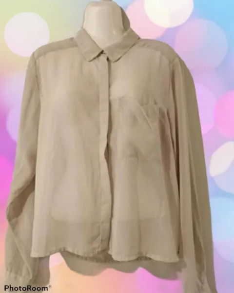 Pack blusas. Pack de 3 blusas, blusa beige transparente H&M talla L, blusa de lunares se puede amarrar de la parte de abajo talla L, blusa rosa Bershka talla M, en buen estado.
