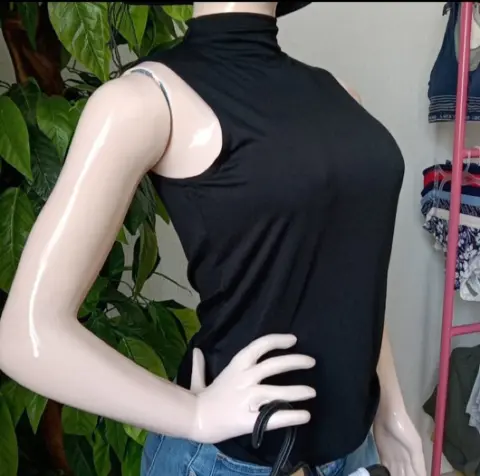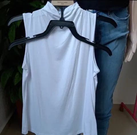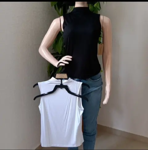 Set de 2 básicas y cómodas blusas color blanco y negro. Cuello alto y sin manga.Tela súper suave y fresca.Talla MHombro a hombro: 31cmAxila a axila: 41cmLargo desde hombro: 56cmMaterial:96% rayón/viscosa4% spandex/elastano