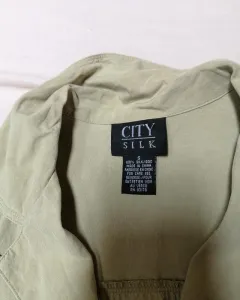 Pack de blusas de Seda talla S. Dos blusas de Seda talla chica, la verde obscuro nueva la verde oliva puesta una vez. La blusita color menta es de poliester y va de regalo. Todas talla chica y en excelente estado