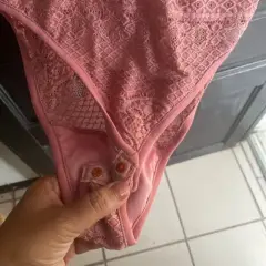 Hermoso body rosa muy lindo, tiene una puesta es de poliéster y nylon… y tiene encajito… se ve súper bien.