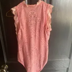 Pantiblusa rosa muy linda. Hermoso body rosa muy lindo, tiene una puesta es de poliéster y nylon… y tiene encajito… se ve súper bien.
