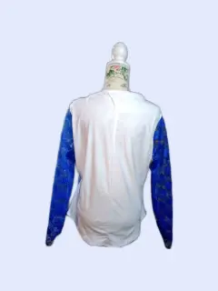 Playera azul rey con blanco con encaje, manga larga, cuello redondo, talla L, es fresca, totalmente nueva solo nos queda 1 pieza