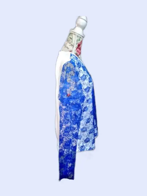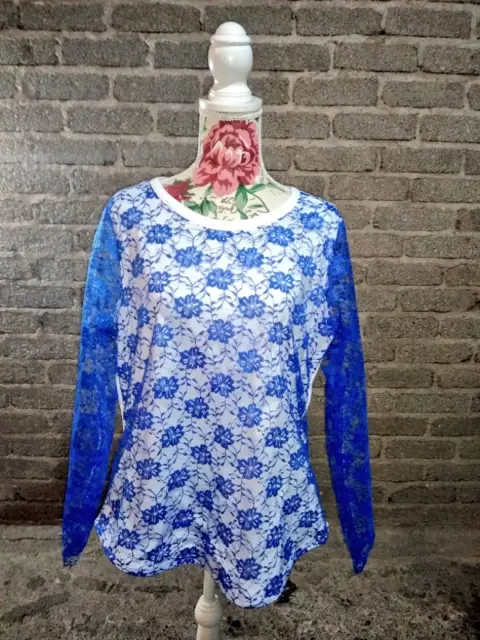 Playera azul rey de encaje. Playera azul rey con blanco con encaje, manga larga, cuello redondo, talla L, es fresca, totalmente nueva solo nos queda 1 pieza