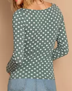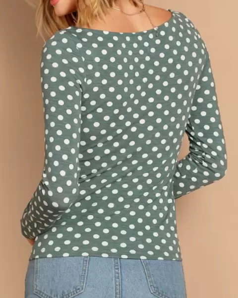 Playera de lunares cuello redondo de manga larga