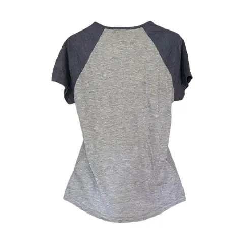 Playera Top Gun con estampado, en una cómoda tela de 50% poliéster, 25% algodón, 25% rayón, manga ranglán corta y cuello En v en contraste. Prepárate para disfrutar de esta nueva aventura con el rebelde aviador Pete Mitchell.