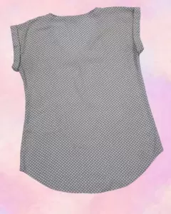 Preciosa blusa de puntitos con cierre. De tela suavecita y sedosa.De manga corta muy fresca y se ve muy bonita.La puedes usar con Jeans o en un look más formal.