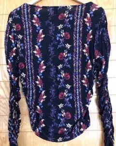 Preciosa Blusa Negra Floral GUESS en color negro con diseño floral. Hermosa y delicado arruche en mangas. Tela suave en strechs. Talla S tambien queda a M.