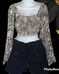 Precioso croptop ajustable. Crop top fresco de manga larga y resorte en el puño. . Con cintillas al frente para ajustar el largo y resorte a la espalda para un ajuste perfecto.