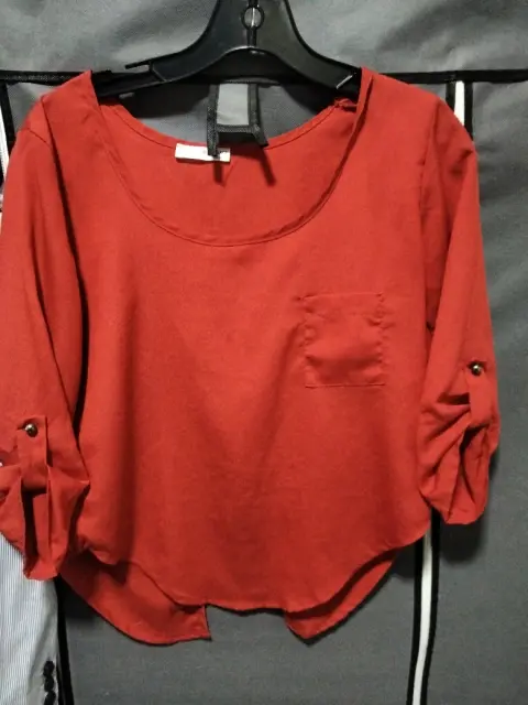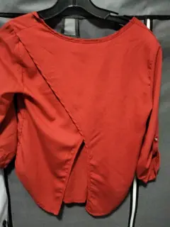 Blusa corta con abertura atrás detalle en mangas color rojo talla M