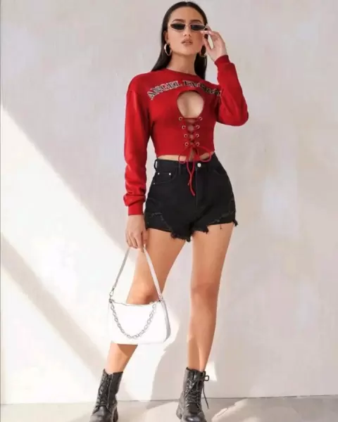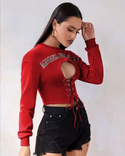 SHEIN Blusa Manga Larga (Rojo). ❤️Pullover con abertura con cordón con estampado de letra. ❤️Medidas:~Hombro: 53.1 cm~Largo: 42.8 cm~Largo de la manga: 55.2 cm~Pecho: 99.5 cm.(NOTA: Es completamente nuevo solo es sacado de la bolsita que da Shein:)