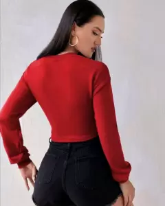 SHEIN Blusa Manga Larga (Rojo)