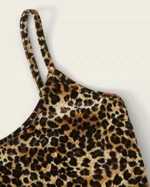 SHEIN. Top de tirante, de terciopelo corto con estampado de leopardo. Nuevo, talla L, largo: 39cm pecho 81cm.