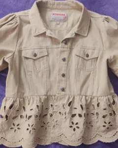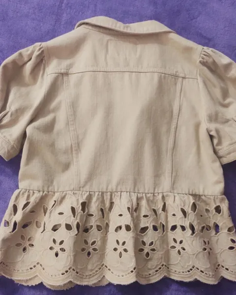 Sobre blusa bordada. Sobre blusa de tela tipo mezclilla con manga tipo bomber, bordada ligera, viene reducida aunque es talla XL, parece talla L