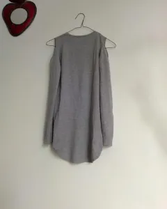 Suéter blusa gris, estampado con aplicaciones de piedras de fantasía, hombros descubiertos, diseño cola de pato.