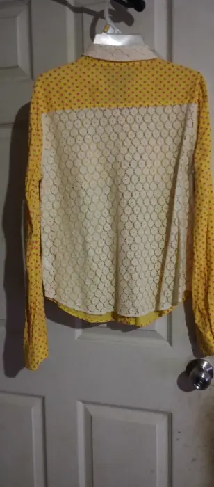 Bonita blusa amarilla , la tela es bastante fresca y sus mangas largas se pueden convertir en tres cuartos... La espalda luce muy bonita porque es de encaje...