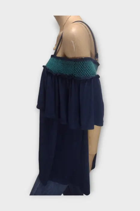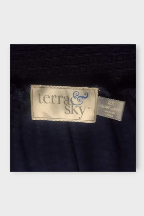 Terra Sky Blusa Bote Poliéster Azul Marino XXL. Terra Sky Blusa Bote Dama Poliéster Azul Marino XXLBlusa Marca Terra Sky 65% Poliester 35% Rayón en Azul MarinoMarca: Terra SkyOrigen: ChinaMaterial: 65% Poliester 35% RayónTalla: XXL 2XEstilo: Blusa BotePatrón: CasualColor: Azul MarinoCierre: AbiertoPecho: 50 cmLargo: 56 cmHombro: 20 cmManga: Sin MangasRopa de USO en muy buen estado